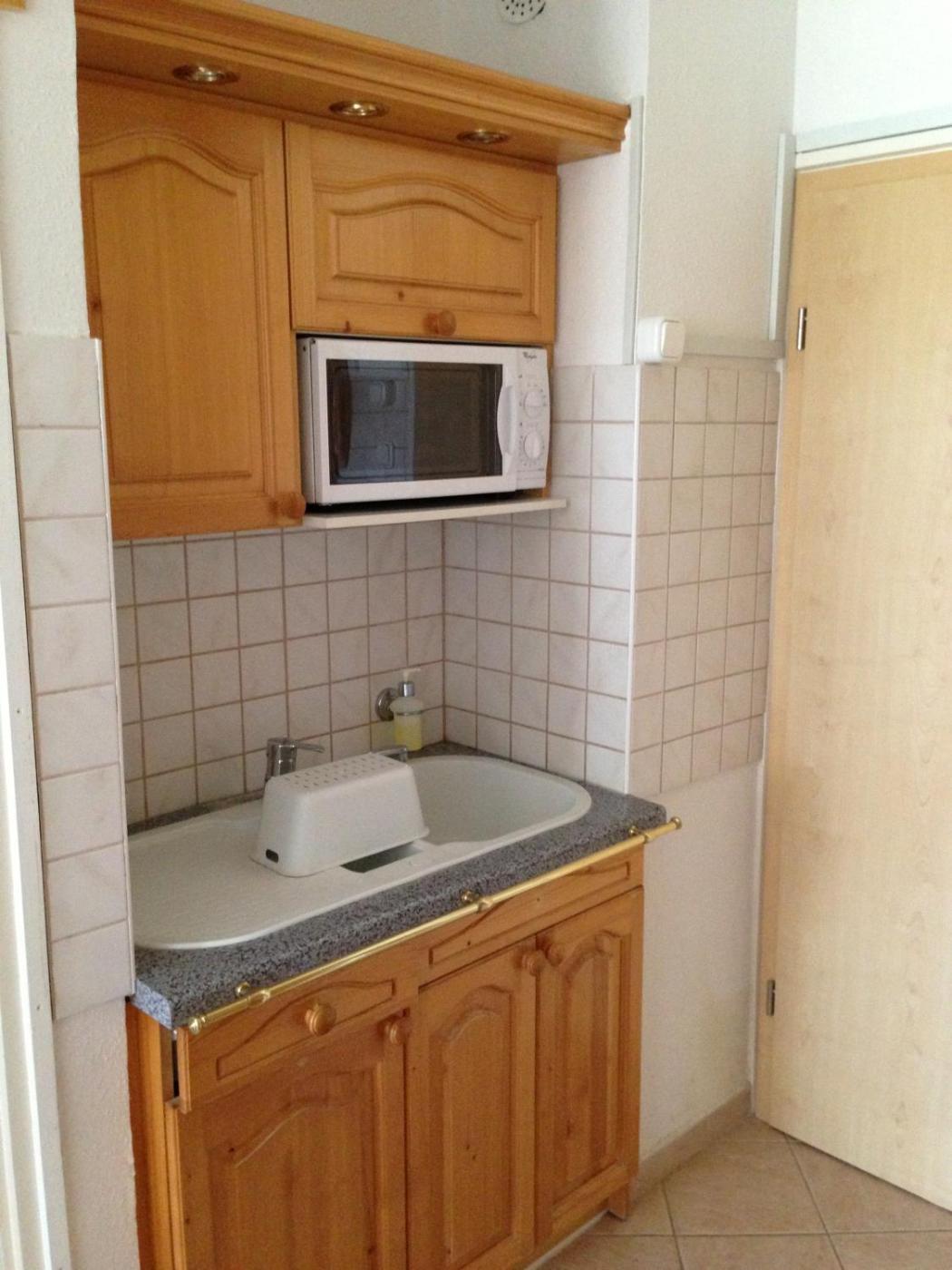 Studio Apartment. This warmly decorated apartment includes cable TV and a modern kitchen with microwave and refrigerator. Each has a private bathroom.