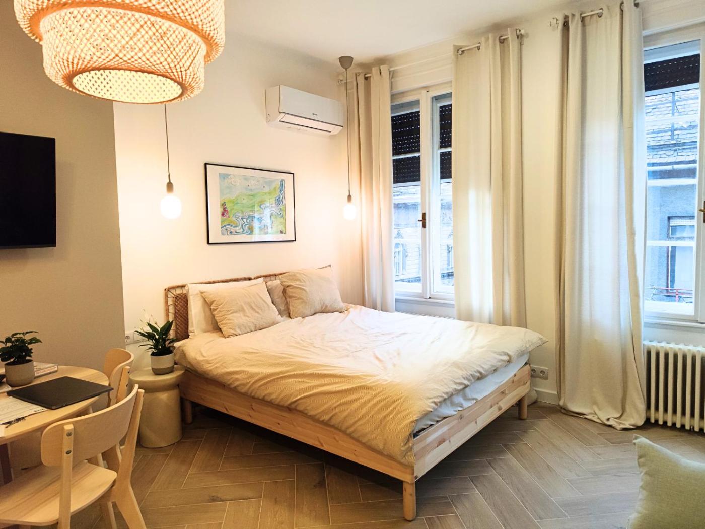 Studio with Balcony. The studios kitchenette, which features an electric kettle, is available for cooking and storing food. The studio offers air conditioning, a washing machine, a terrace with city views as well as a private bathroom featuring a bath or a shower. The unit offers 1 bed.
