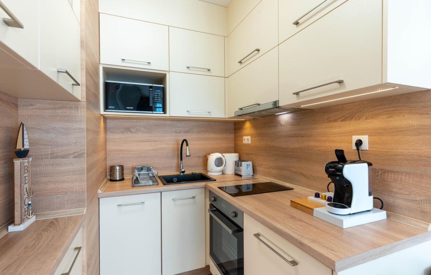 The air-conditioned apartment is composed of 1 separate bedroom, a living room, a fully equipped kitchen, and 1 bathroom. A flat-screen TV is offered.
