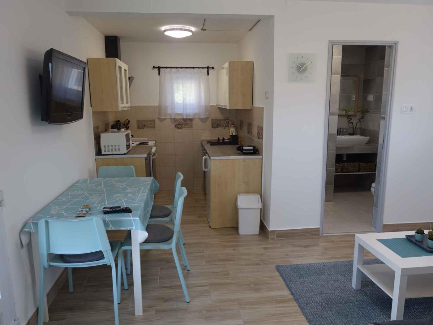 The air-conditioned holiday home is composed of 2 separate bedrooms, a fully equipped kitchenette with an oven and a microwave, and 1 bathroom. The accommodation is non-smoking.